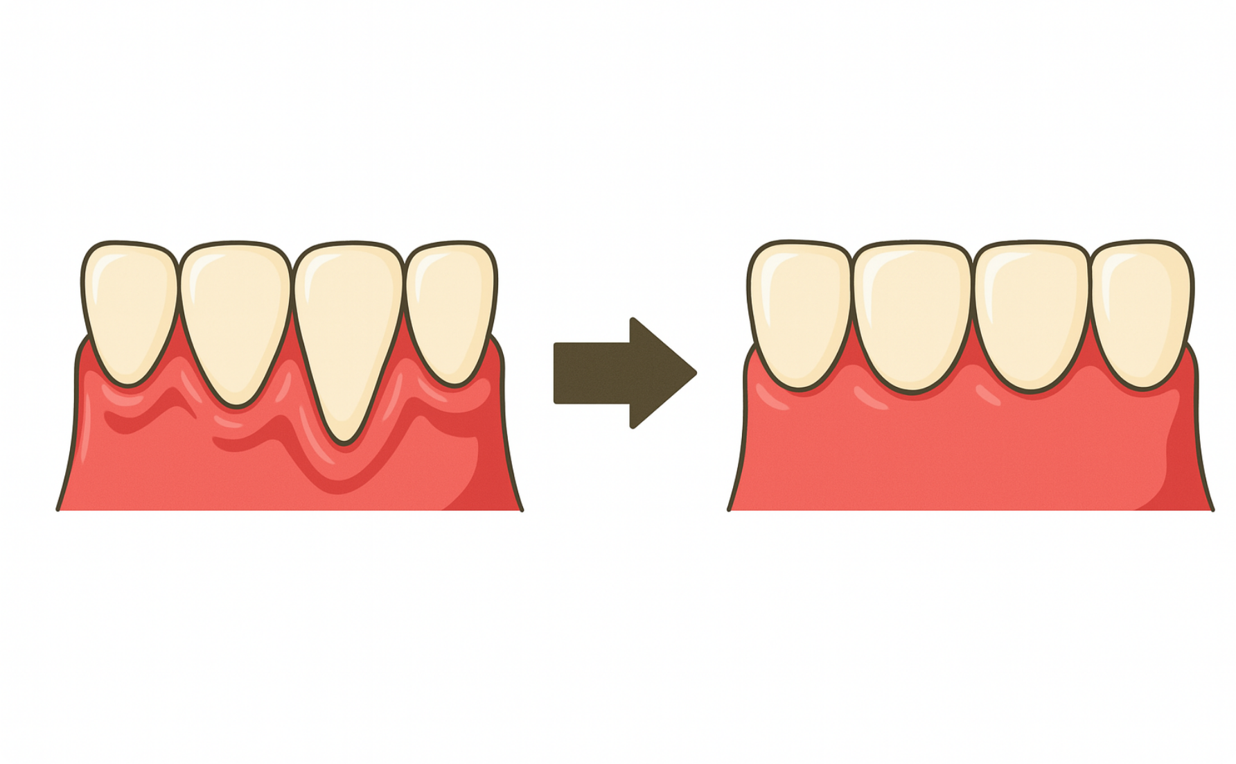 歯茎が下がってしまう原因は歯周病・矯正治療・強いブラッシングなど様々です。歯茎が下がると審美的な問題以外にも、知覚過敏が起きたり歯ブラシの難しさから歯垢(プラーク)が停滞しやすくなり、虫歯や歯周病のリスクが高まってしまいます。
