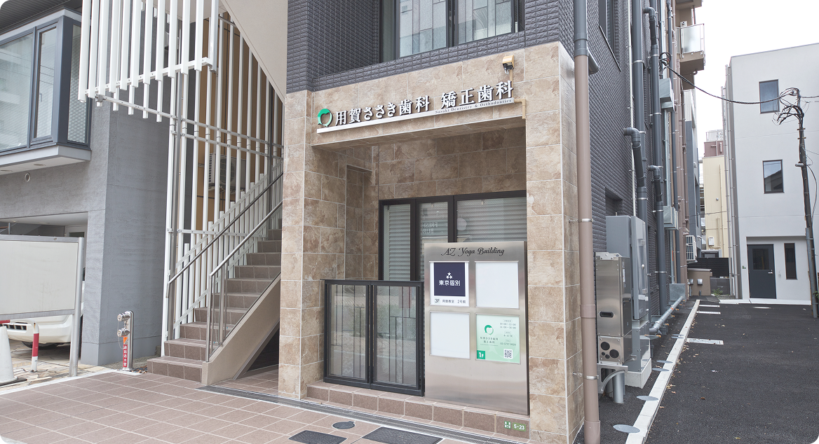 当院は用賀駅南口1分の場所にあります。隣には三井住友銀行、向かいにはフレッシュネスバーガーがあります。