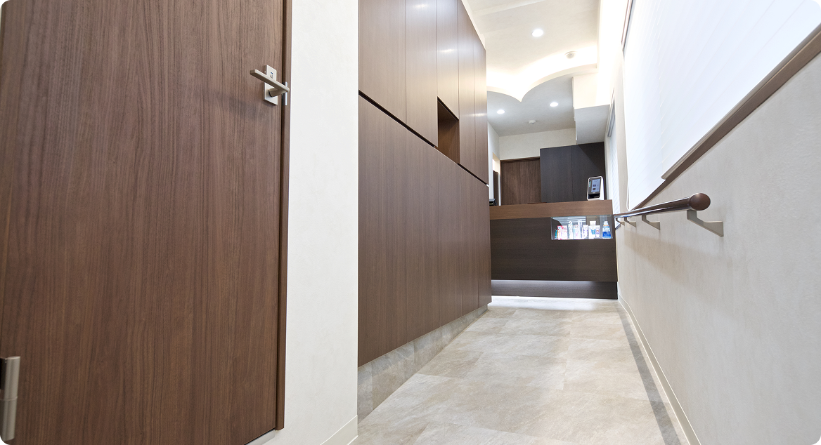 入口から診療室までバリアフリーとなっています。ベビーカーをお持ちの方も、車椅子の方もご来院いただけるような設計にしています。